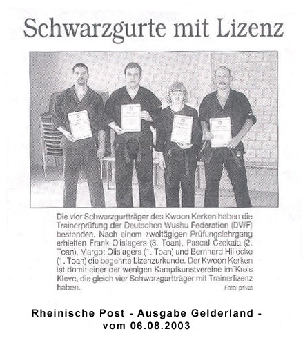 Vom Kwoon Kerken-Geldern absolvierten folgende Mitglieder allesamt die Prüfung